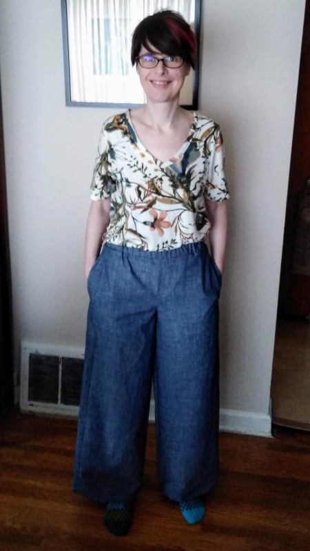 They are a wide-leg style with an elastic waistband, and I used a chambray fabric I bought online from Mood Fabrics in New York. The pattern was Simplicity 8299. This was a huge accomplishment for me, and I’m looking forward to my next sewing project…